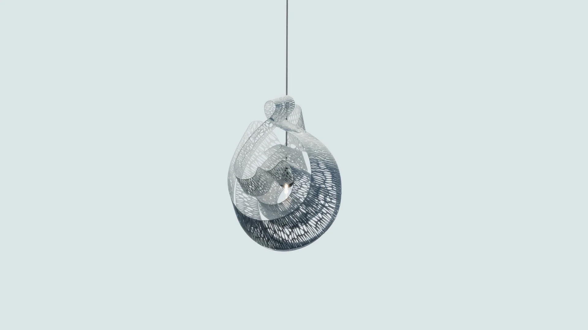 Synecious lines of Arabic calligraphy peeling off a flat surface to unbounded space. Hayat (the Arabic word for “life”) effortlessly wraps a light source in a celebration of mystical complexity.
